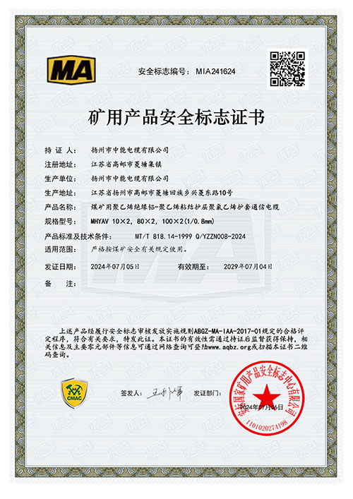 礦用產(chǎn)品安全標(biāo)志證書(shū)MHYAV 10X2,80X2,100X2(1/0.8mm2)